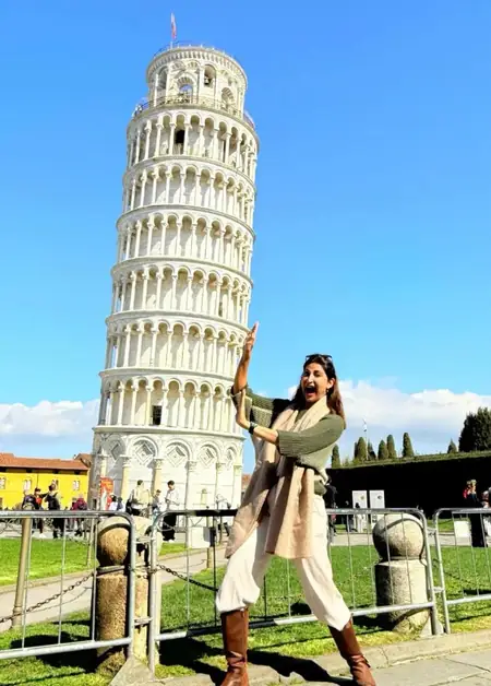 From standing in awe before Rome’s rich artistic heritage to marveling at the grandeur of Florence, Aahana’s trip was a feast for the senses. ‘Posing in front of the famous Leaning Tower of Pisa and soaking in the majestic vibes of beautiful Florence was truly special,’ she captioned. Though her time in Florence was brief, witnessing Michelangelo’s original David statue up close became a highlight, followed by the striking Perseus with the Head of Medusa – the very Medusa whose image graces Versace’s logo today. Seeing history and mythology come alive in the heart of the city felt like pure magic.