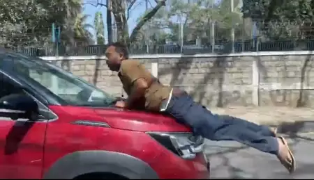 At a signal on CB Road near HAL Airport Road, Nanjunda approached the SUV to confront the driver about the profanity and asked him to pull over. In a sudden move, Suresh accelerated sharply. Fearing for his life, Nanjunda jumped onto the bonnet, gripping the windshield wiper.