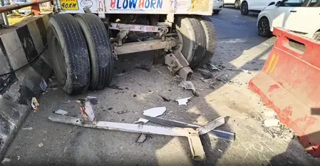 The accident occurred in front of Vinod Nagar Depot, where the car, heading towards Ghaziabad, slammed into the truck with such force that its front end was embedded in the container. Police rushed to the scene after receiving a PCR call and initiated immediate rescue operations.