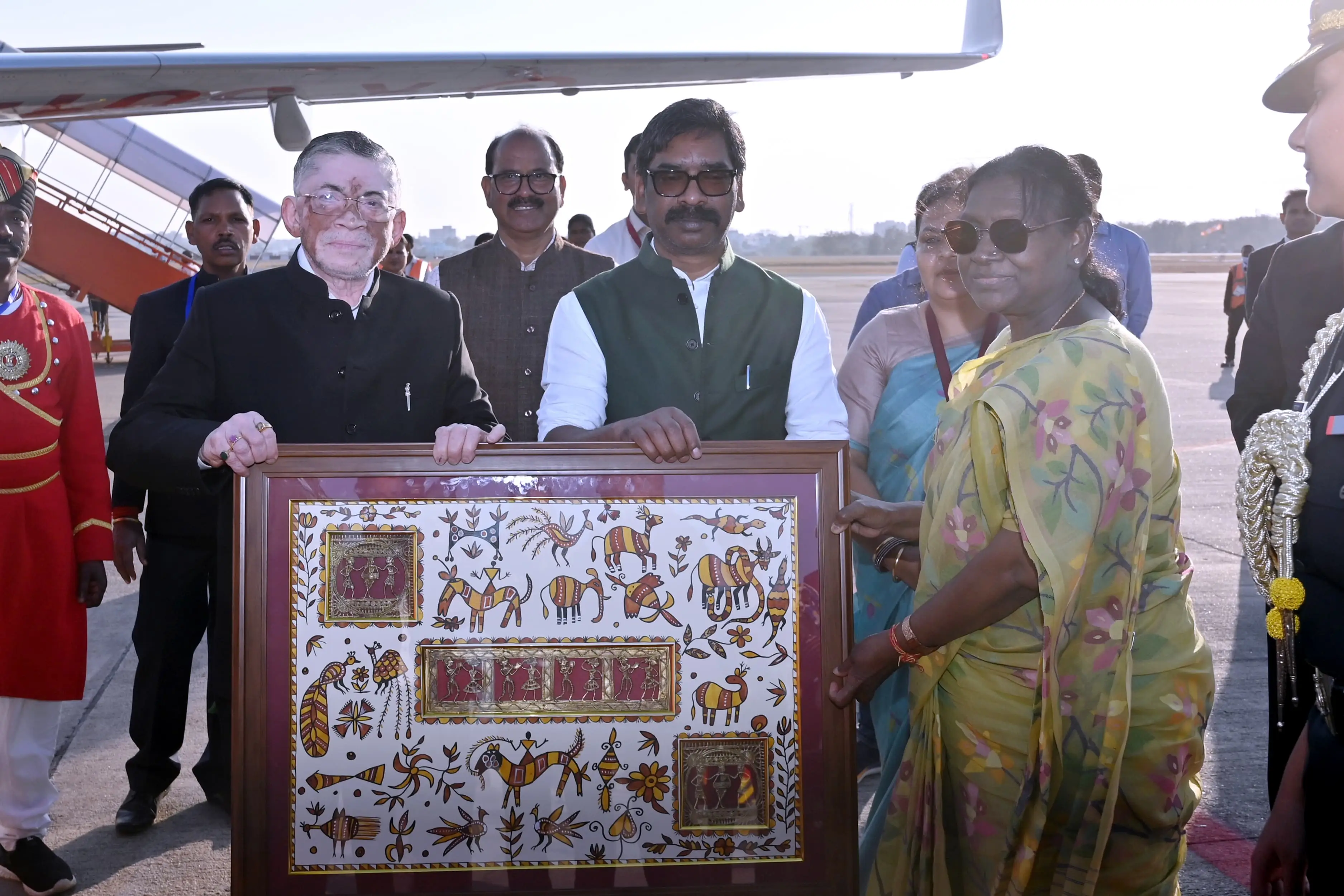 Governor Shri Santosh Gangwar and Chief Minister Shri Hemant Soren reached to bid farewell to President Shrimati Draupadi Murmu