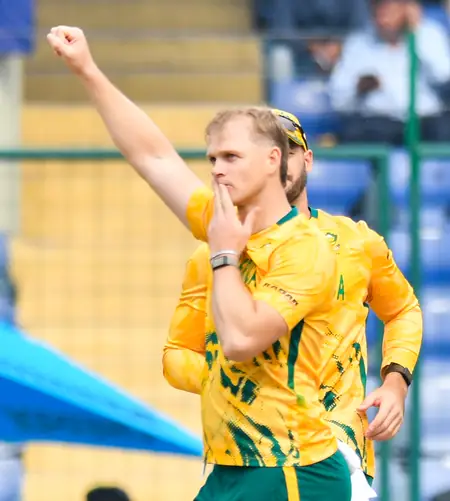 Bosch was the standout performer, claiming 3 wickets for a miserly 12 runs in his four overs. He dismantled the top order by removing openers Aryansh Sharma and Shoaib Khan, along with Mohammad Arfan. Enrich Nortje supported with 2 for 28, dismissing Sharafu and Syed Haider, while George Linde chipped in with 1 for 17.