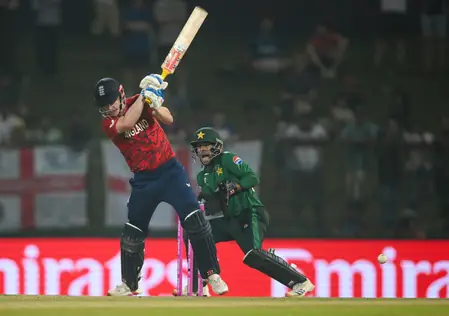 England’s chase got off to a rocky start. Opener Phil Salt fell for a golden duck on the very first ball, bowled by Pakistan’s Shaheen Afridi. Captain Jos Buttler, struggling with form, managed just 2 runs before Afridi struck again. Jacob Bethell scored 8, and Tom Banton added 2 as the top order crumbled under pressure.