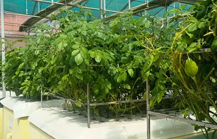Dr. Sushma Tiwari, a key scientist in the department, explains the innovative process. It begins with tissue culture in the lab to grow potato plants. Once these plants undergo hardening to build strength, they are transplanted into the aeroponics unit. Here, roots dangle freely in the air—no soil required. A small cut is made at the root base, and nutrient-rich mist is sprayed using fogging technology.