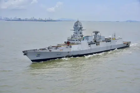 Equipped with BrahMos anti-ship missiles, vertical launch systems for 32 surface-to-air missiles, and advanced surveillance radars, the 163-meter-long vessel displaces 7,400 tons and cruises at 30 knots powered by four gas turbines. Its anti-submarine rocket and torpedo launchers further enhance its versatility for combat and relief operations.