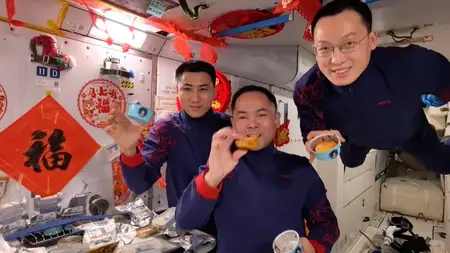 On Monday night, the eve of the festival, the crew will savor special Spring Festival delicacies prepared in microgravity. Among the highlights: traditional dishes paired with cakes baked for the first time in the station’s space oven – a culinary milestone in orbit.